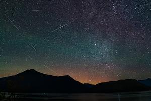 A meteor shower bursting through airglow at Arrow Lakes - August 2020