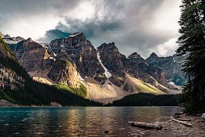 A spot of sun breaking through the clouds at Moraine Lake - August 2020
