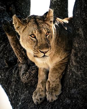 A rare sighting of a lionness in a tree in the Serengeti - August 2019