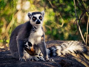 A Ringtail Lemur baby and mom in the jungles of Madagascar - August 2019